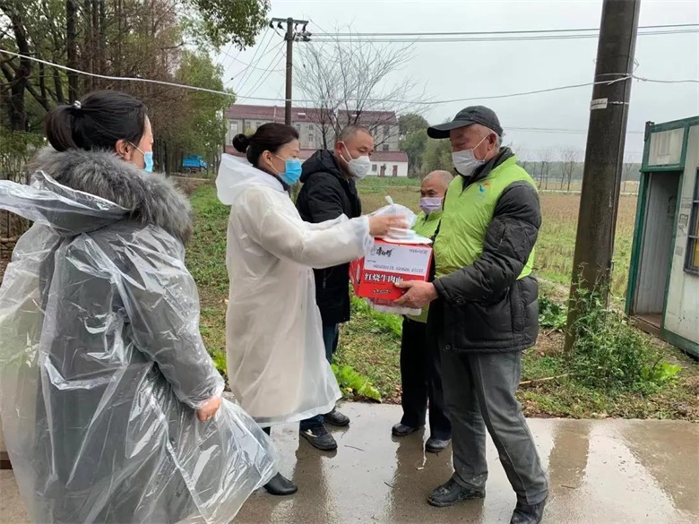 “把有金属条的那一面朝上,戴上以后把鼻梁那个地方摁几下固定住……另外,近期尽量别出门……”老人仔细听着,同时拿着口罩激动地说:“没想到村里还想着给我送口罩,你们想的太周到了,辛苦了!你们也要照顾好自己!”