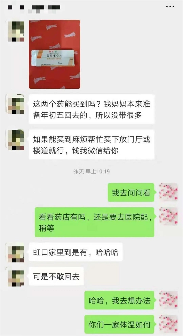 疫情当前,让老百姓安心、放心、定心,成为了冯艳的“座右铭”。只要是居民的合理需求,她都是第一时间去协助解决。添加完返沪隔离人员微信,主动询问隔离人员各种需求。隔离人员需要购买药物,药店能购买到的,冯艳便亲自前往药店购买,还亲自送上门。冯艳说,“把每一件小事做好,不计苦劳、不问过程,我坚信,情况一定会慢慢改善。”
