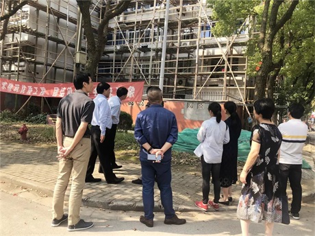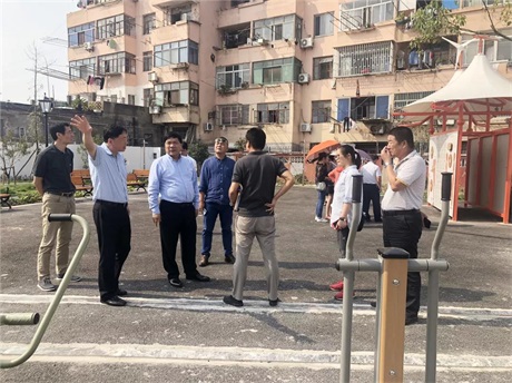 代表们现场查看了一兴居委口袋公园的建设情况,中港居委老旧小区改造项目、场中路百路整治工作推进情况。